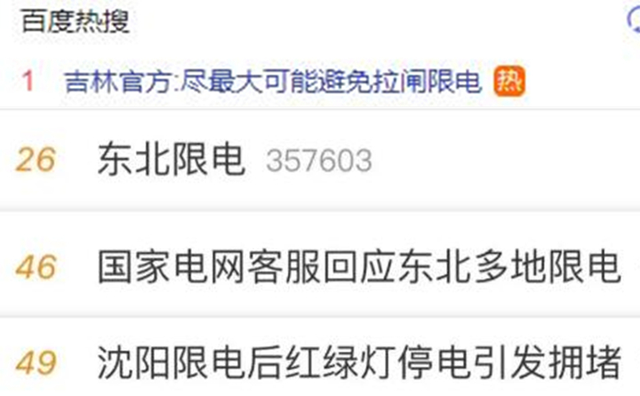 ?近日,“東北限電”的話題在社交媒體上引發(fā)關注。據媒體報道,從9月23日開始,東北多地出現(xiàn)了用電高峰時段拉閘限電的情況,沈陽市、長春市等地均執(zhí)行了限電。國網吉林省電力有限公司---“先錯峰,再避峰,再限電”。