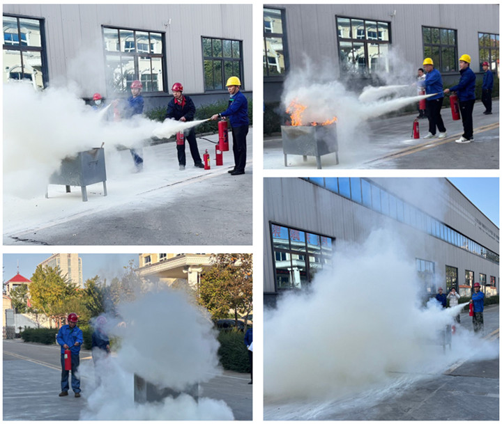 演練正式開始前,集團黨支部副書記景奉全結合近年來典型的企業火災案例,講解了火災的成因、初期火災的撲救要點、滅火器的種類及適用場景等知識,讓員工深刻認識到 “小火早滅、大火早逃” 的重要性。